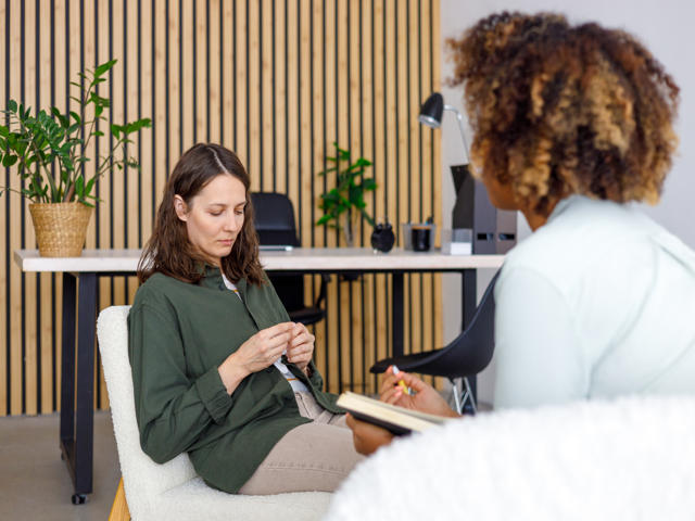 African American female psychologist conducts an appointment with a patient in the office. mental health and moral support.